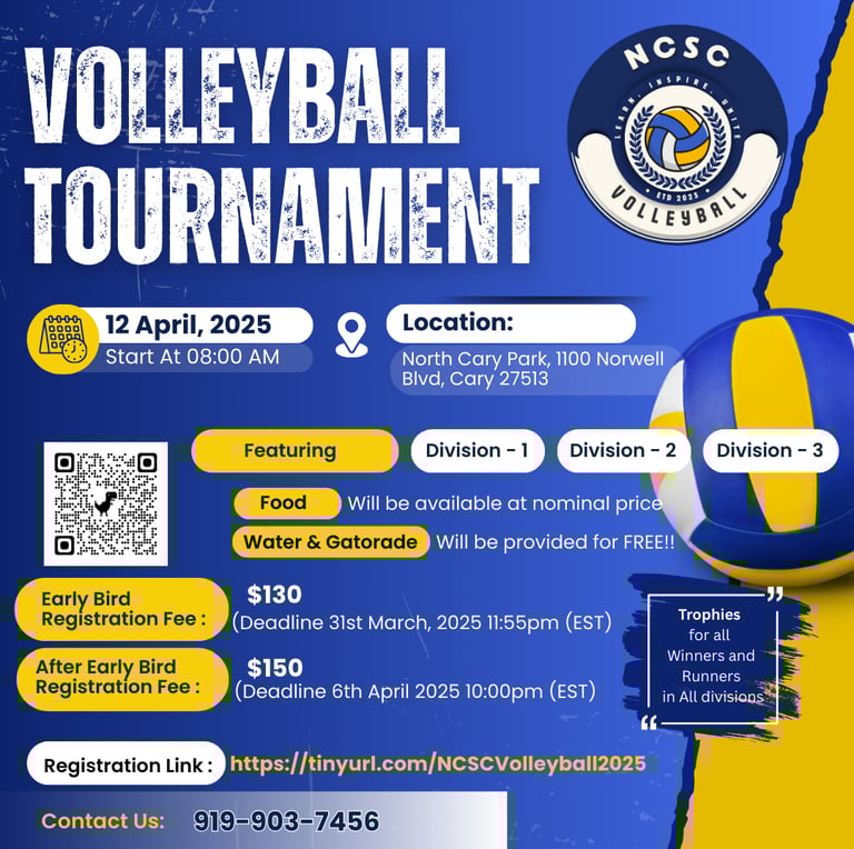 Calling all Volleyball enthusiasts! Get ready to compete, connect, and showcase your skills at the NCSC Volleyball Tournament 2025. Registrations are now open, and this is your chance to be part of an exciting event filled with high-energy matches and great sportsmanship.